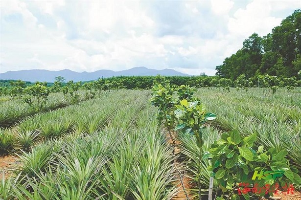 海南橡胶龙江分公司在波罗蜜中间种凤梨。王明月 摄