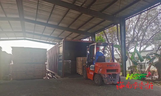 海南橡胶“零添加”FSC橡胶木刨光锯材装车发运