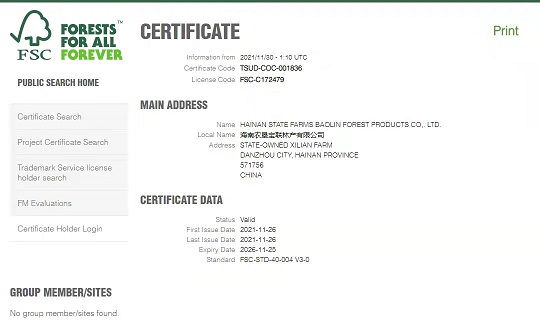 海垦宝联林产有限公司获得FSC-COC产业监管链认证证书2021年11月30日,海南农垦宝橡林产集团股份有限公司(以下简称宝橡林产集团)下属子公司海南农垦宝联林产有限公司(以下简称宝联公司)通过FSC森林体系认证,顺利...