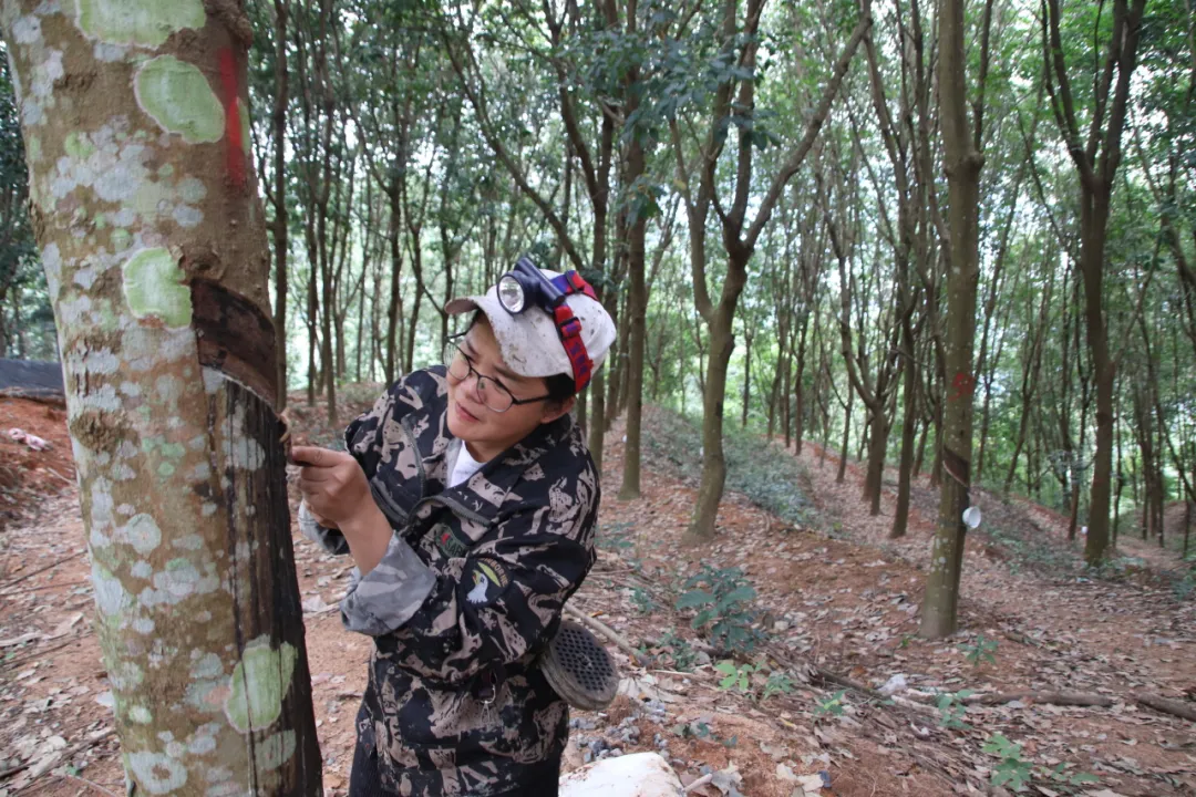 我是海胶集团保国分公司13队胶工曾湘湘,是农垦第二代职工子女。2004年初,我回到生我养我的故乡,接过爸爸妈妈手中的胶刀成为一名割胶工人,从此就与橡胶树结下了不解之缘。